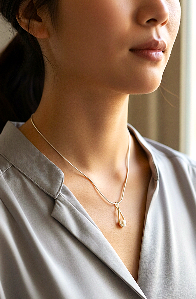 6mm Pearl Infinity Drop pendant on 16" Sterling Round Snake chain