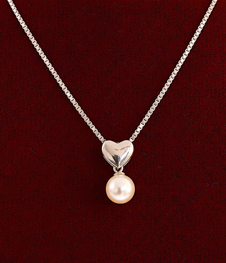 Petit 6mm Pearl & Sterling Heart pendant w/ 1mm 16" Sterling box chain necklace