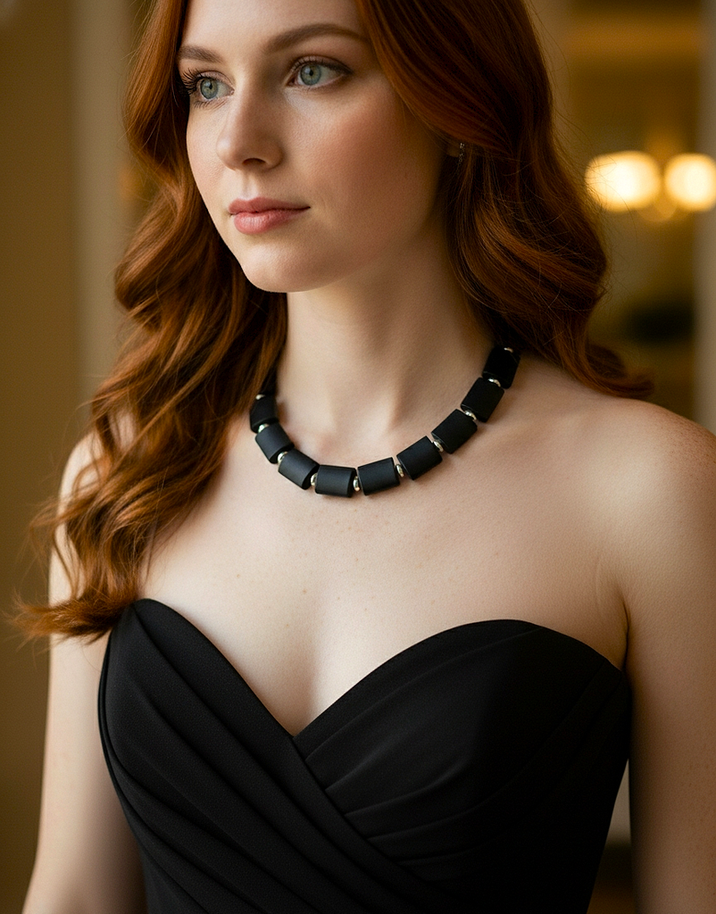 Matte Black Onyx necklace w/Sterling accents